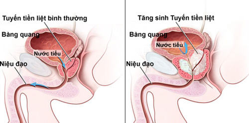 U phì đại lành tính TLT: Ở trẻ em, TLT rất nhỏ. Từ tuổi dậy thì, TLT bắt đầu phát triển đạt tới kích thước tối đa vào lúc 20 tuổi và giữ nguyên kích thước cho tới năm 50 tuổi. Kể từ tuổi 50 trở đi, TLT to ra theo thời gian và gây ra bệnh u phì đại lành tính TLT. Bệnh phát triển từ từ hay đột ngột với những biến chứng như nhiễm khuẩn, bí tiểu, suy thận. U phì đại lành tính TLT không có hiện tượng ung thư hóa nhưng có thể bị ung thư xâm nhiễm với tỷ lệ từ 10 - 25%. Ở giai đoạn đầu, bệnh nhân hay tiểu lắt nhắt vào ban đêm, nhất là từ nửa đêm đến sáng sớm, mỗi lần đi tiểu phải rặn. Sau đó đi tiểu lắt nhắt cả ngày lẫn đêm, mỗi lần đi tiểu xong vẫn còn có cảm giác nước tiểu chưa ra hết mà còn đọng lại trong bàng quang. Cuối cùng là tiểu ri rỉ hoặc bí tiểu. Nhiễm khuẩn là biến chứng hay gặp. Thăm trực tràng thấy một khối u to, hơi mềm hoặc chắc, bề mặt nhẵn. Để chẩn đoán chính xác, cần cho bệnh nhân siêu âm. Trong giai đoạn đầu, thầy thuốc thường cho điều trị nội khoa với các thuốc như tadenan, xatral, crila (chiết xuất từ lá cây trinh nữ hoàng cung). Khi bệnh tiến triển nặng hoặc biến chứng, cần can thiệp phẫu thuật. Hiện nay, phẫu thuật được nhiều thầy thuốc ưa thích và lựa chọn là phẫu thuật nội soi qua đường niệu đạo.