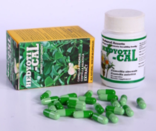 Hedyoti - Cal có hoạt chất chiết xuất từ Chè xanh (Camellia sinensis) và Rau má (Centella asiatica). Khi bào chế và phối hợp các loại thảo dược trên với nhau sẽ tạo thành sản phẩm có tác dụng chống oxy hóa, làm chậm sự lão hóa của cơ thể, tác dụng chống đái tháo đường, làm giảm béo do lớp mỡ dư bị tiêu hao. Hỗ trợ điều trị các bệnh về tim mạch, chức năng gan. Nâng cao thể trạng của cơ thể.